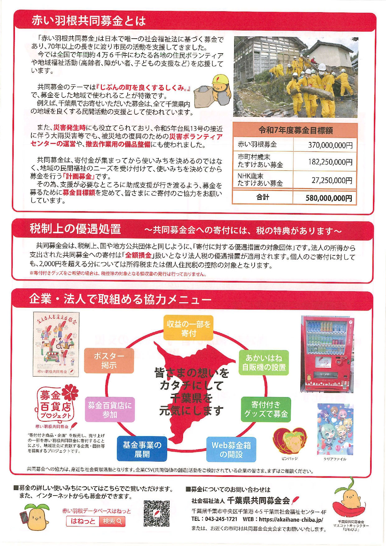(振込用紙に「赤い羽根・流山」とご記入ください。)